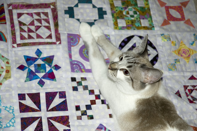 It's time to have another fabric giveaway so Buddy will have more room to store his cat toy hoard. In previous months I was moving flat folds of fabric and taking cuts from these for the giveaway. These are stored away so I will be digging into scraps, small cuts (up to 1/2 yard) and yardage. This will depend on what you want such as particular colors, 30s, batik, novelty etc. I will fill a USPS envelope with that fabric and send it to you.